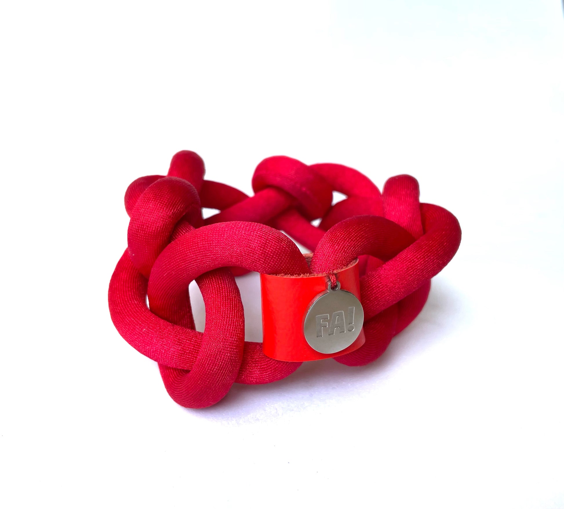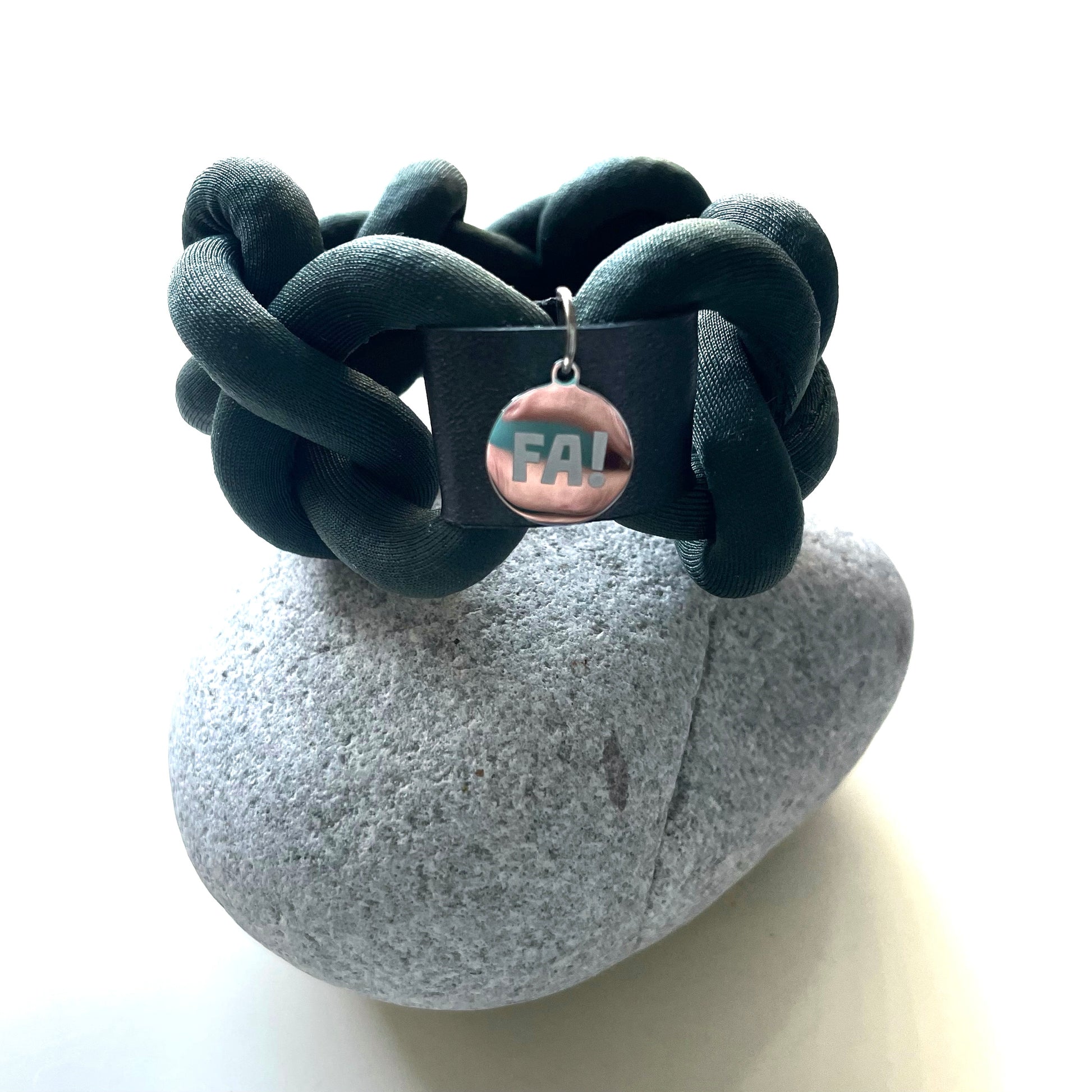 Pulsera de cuerda, tela y cuero. Esta pulsera es una de mis preferidas ya que es muy guapa y vistosa. También la podrías combinar con un collar FA! LOOP.